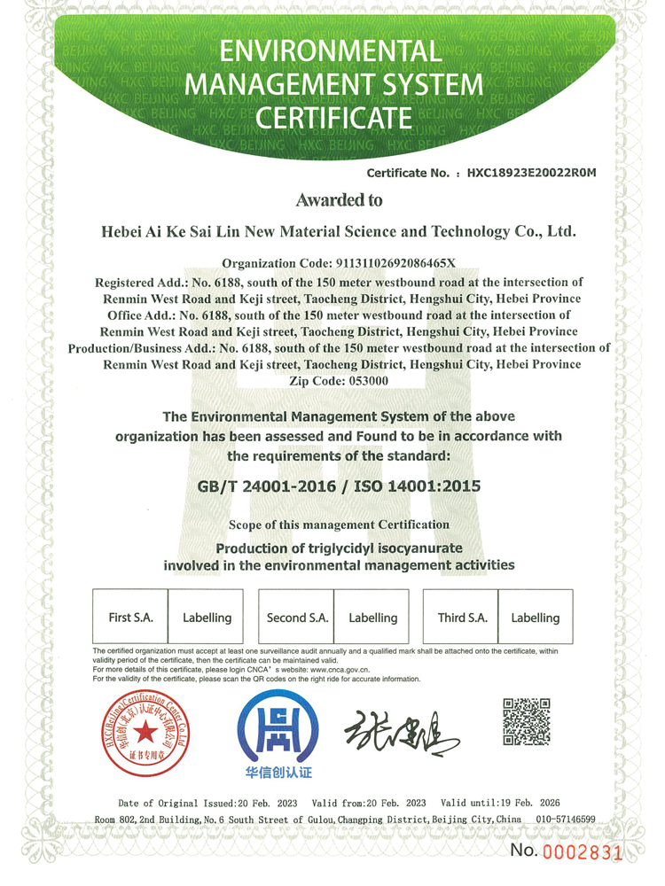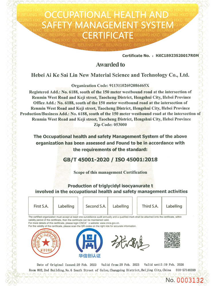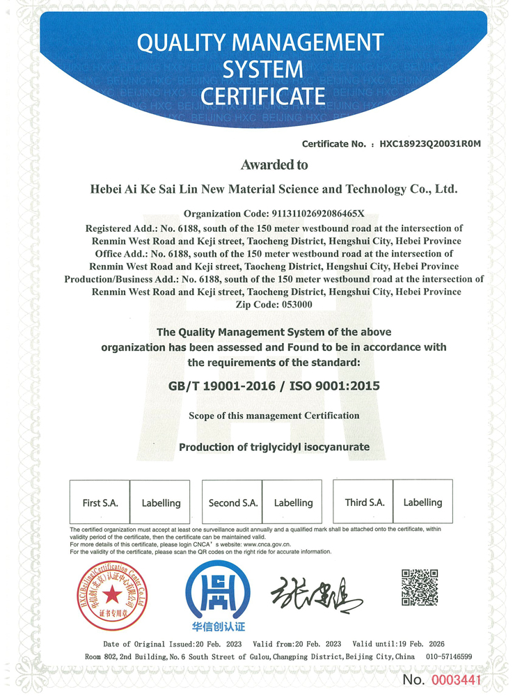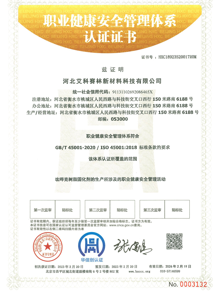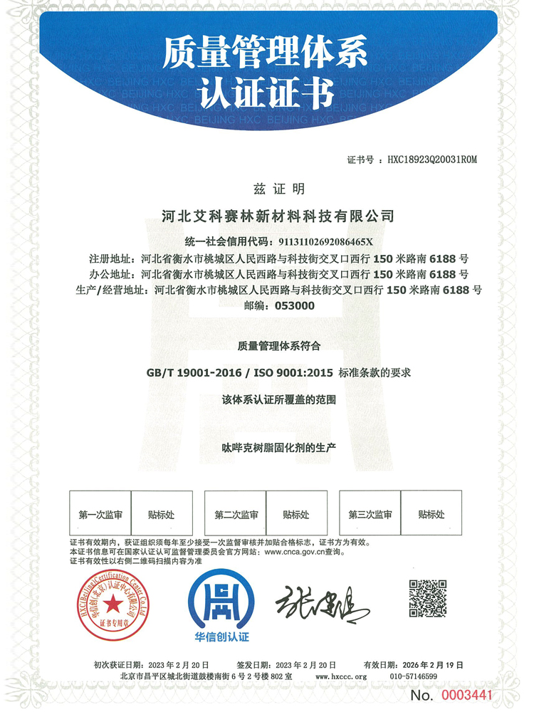 河北艾科賽林新材料科技有限公司成立于2009年,坐落在河北衡水桃城省級高新技術(shù)產(chǎn)業(yè)園區(qū),占地100畝,注冊資金2500萬元,是一家以粉末涂料固化劑及高性能特種材料研發(fā)、生產(chǎn)、銷售為一體的高新技術(shù)企業(yè)。在激烈的市場競爭中不斷壯大,產(chǎn)品憑借良好的信譽(yù)與精益求精的工藝,在市場中取得良譽(yù)和好評。公司已通過ISO9001質(zhì)量管理體系,IS014001環(huán)境管理體系、ISO45001職業(yè)健康安全管理體系。公司被認(rèn)定為“高新技術(shù)企業(yè)”,河北省“專精特新”中小企業(yè),先后獲得河北省行業(yè)“技術(shù)創(chuàng)新先進(jìn)企業(yè)”,桃城“校企合作創(chuàng)新優(yōu)秀企業(yè)”、畝均“納稅貢獻(xiàn)先進(jìn)企業(yè)”等榮譽(yù)稱號......